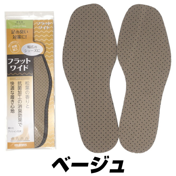 COLUMBUS コロンブス 中敷き インソール サイズ調整 メンズ 男性用 スニーカー ビジネスシューズ ブーツ 革靴 靴 フラットワイド 足の臭い対策 抗菌加工 通気性 消臭 クッション 黒 ベージュ 24cm 25cm 26cm 27cm ポイント消化